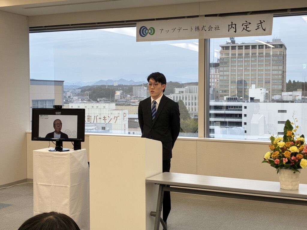 初めは楽しんでもらえるか心配でしたが、時間が経つにつれ楽しそうな笑い声が聞こえてきて安心しました。今回の内定式と懇親会で少しでも働くイメージがついたり、アップデートの雰囲気を感じて頂けていたら嬉しいです!