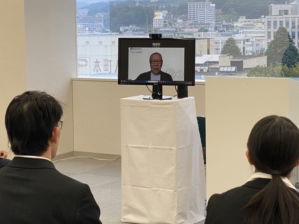 「仕事は人を幸せにする行為である」「健康管理も実力の内」という社会人としての心構えについてお言葉をいただきました。