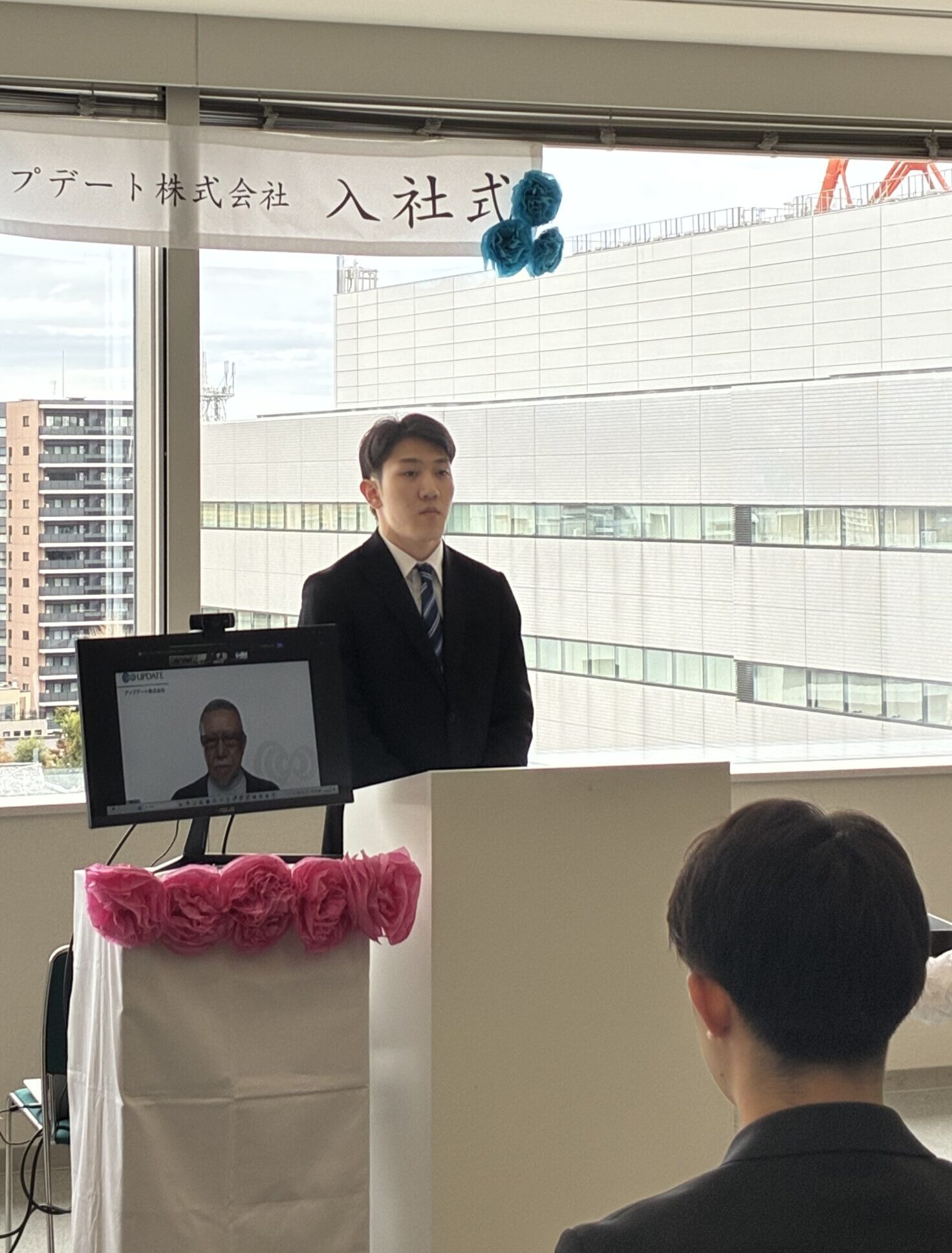 自身の入社当時の経験談や、仕事のやりがいなどを交えながら、新しい仲間を迎え入れる喜びと、今後の活躍への期待が熱く語られました。