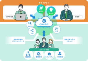 スマート社員は、業務変革で生まれるナレッジやデータを独自プラットフォーム「CLOUDIT」に集約します。