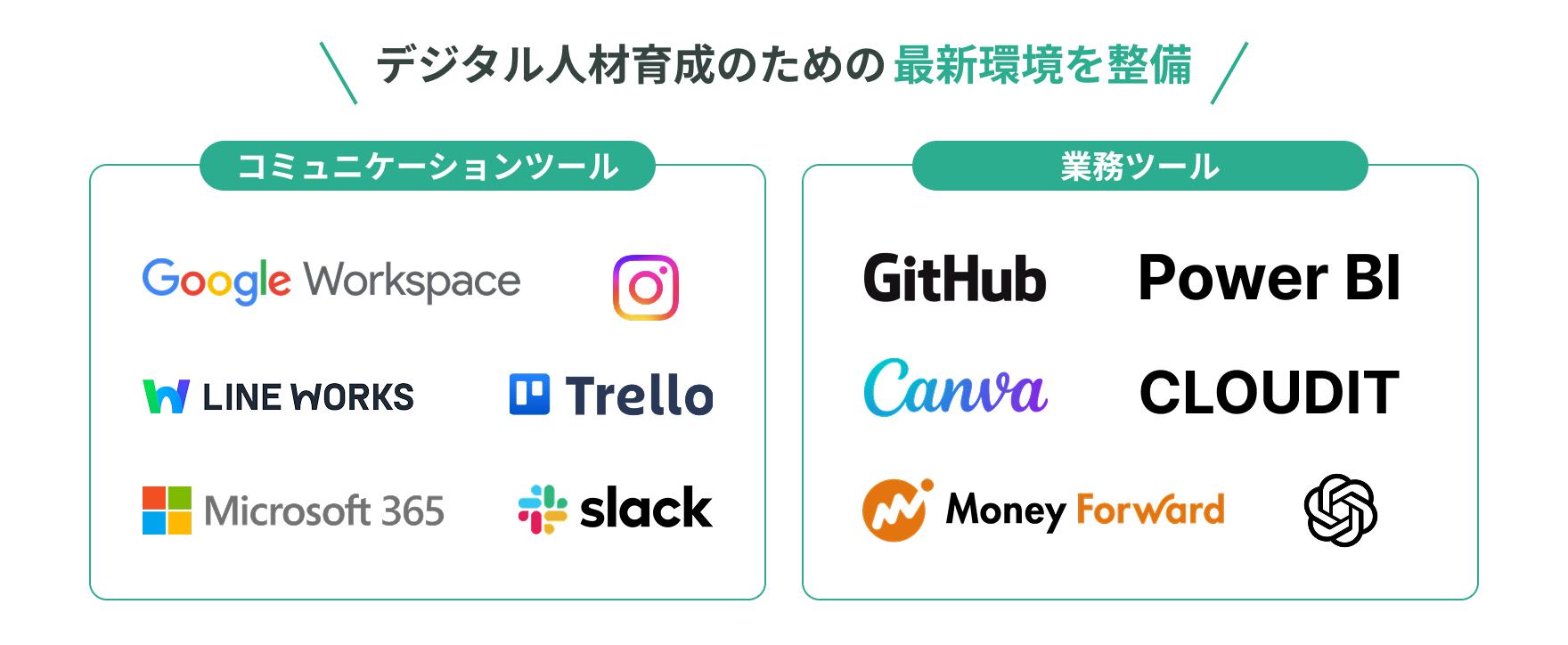 IT領域の専門性と経営視点を兼ね備えた人材を育成し、DXの伴走パートナーとして企業の成長を支援します。